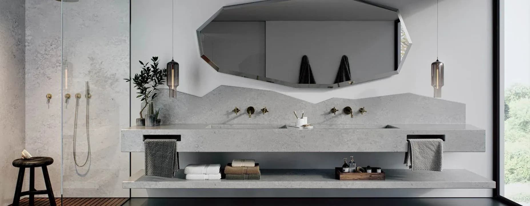 Caesarstone is a beautiful engineered quartz stone which comprises approximately 93% natural quartz. Practical, durable and attractive, it has significant advantages over natural stone and other surfacing materials due to its superior strength and quality. Caesarstone is ideal for kitchen worktops, kitchen countertops, bathroom countertops, bathroom vanity units and quartz tiles. Every Caesarstone quartz worktop surface comes with a comprehensive 25 year guarantee to provide further peace of mind. Caesarstone is one of the most innovative quartz worktop manufacturers. We love the quality of the natural-stone alternatives. Ever since the ground-breaking London Grey, we have come to expect the very best, most natural-looking marble, limestone and travertine alternatives from the Israeli manufacturer. Slab sizes range from standard to jumbo Non-porous Clean with regular detergents No sealing or waxing Heat resistant
