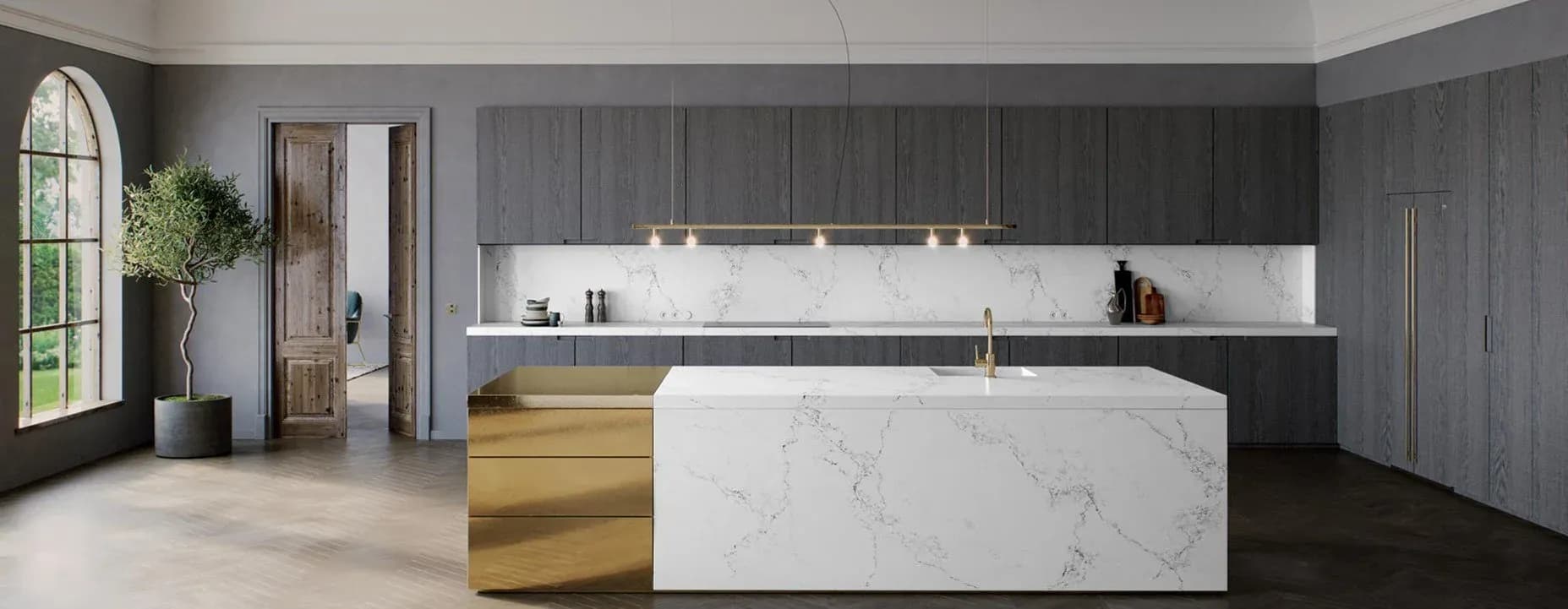 Caesarstone is a beautiful engineered quartz stone which comprises approximately 93% natural quartz. Practical, durable and attractive, it has significant advantages over natural stone and other surfacing materials due to its superior strength and quality. Caesarstone is ideal for kitchen worktops, kitchen countertops, bathroom countertops, bathroom vanity units and quartz tiles. Every Caesarstone quartz worktop surface comes with a comprehensive 25 year guarantee to provide further peace of mind. Caesarstone is one of the most innovative quartz worktop manufacturers. We love the quality of the natural-stone alternatives. Ever since the ground-breaking London Grey, we have come to expect the very best, most natural-looking marble, limestone and travertine alternatives from the Israeli manufacturer. Slab sizes range from standard to jumbo Non-porous Clean with regular detergents No sealing or waxing Heat resistant