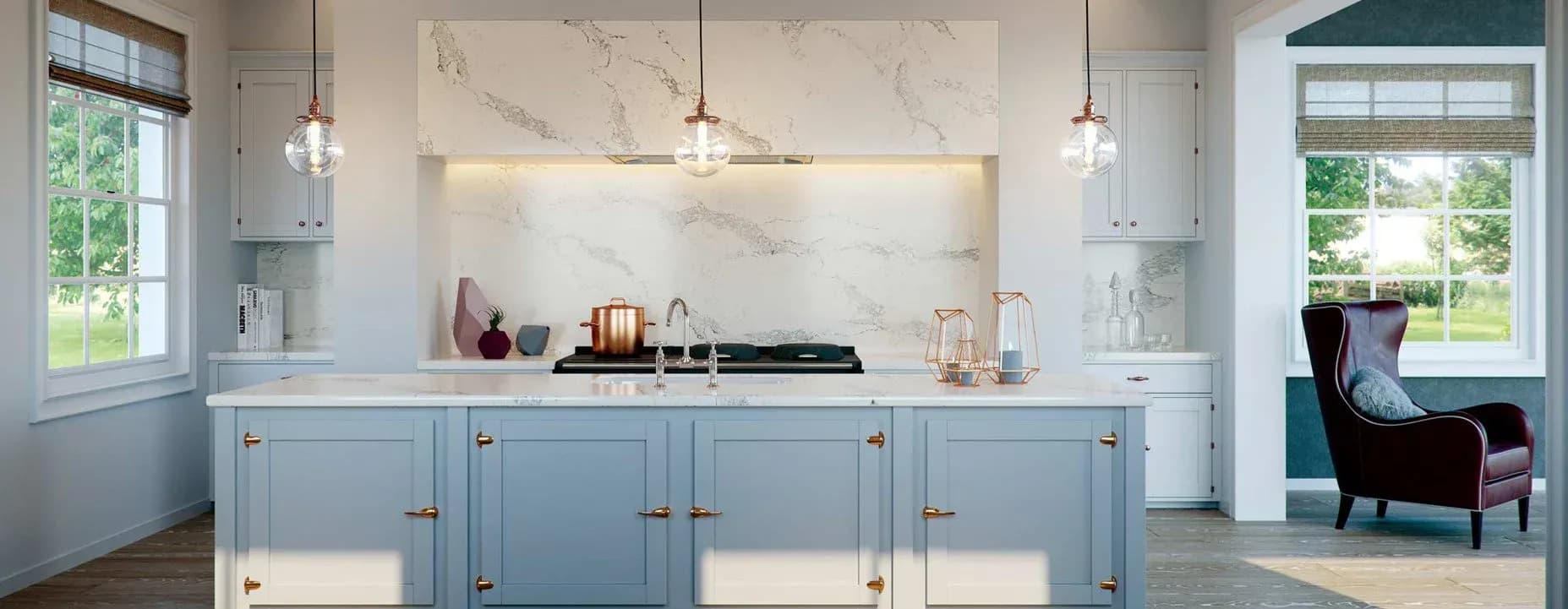 Caesarstone is a beautiful engineered quartz stone which comprises approximately 93% natural quartz. Practical, durable and attractive, it has significant advantages over natural stone and other surfacing materials due to its superior strength and quality. Caesarstone is ideal for kitchen worktops, kitchen countertops, bathroom countertops, bathroom vanity units and quartz tiles. Every Caesarstone quartz worktop surface comes with a comprehensive 25 year guarantee to provide further peace of mind. Caesarstone is one of the most innovative quartz worktop manufacturers. We love the quality of the natural-stone alternatives. Ever since the ground-breaking London Grey, we have come to expect the very best, most natural-looking marble, limestone and travertine alternatives from the Israeli manufacturer. Slab sizes range from standard to jumbo Non-porous Clean with regular detergents No sealing or waxing Heat resistant