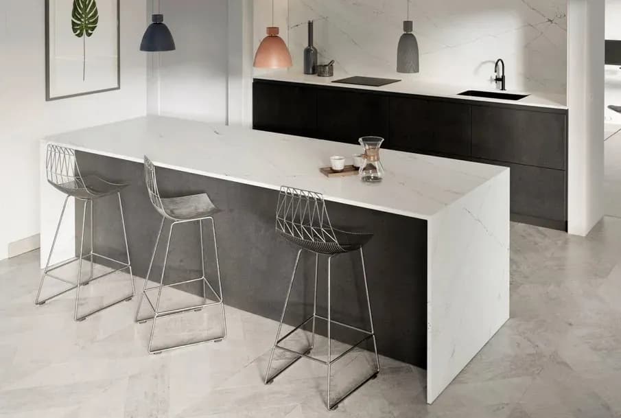 Silestone Ethereal Noctis is a compound made up of 94% natural quartz, which makes it an extraordinarily hard and resilient stone. This is the one and only worktop made of quartz with anti-bacterial protection, giving it hygienic properties that are not to be found anywhere else on the market. It is an excellent surface for kitchen worktops, bathrooms, floors and wall cladding using the minimum number of joints. Silestone Quartz products will bring surfaces with incredible mechanical properties to your creations. Firstly, the materials are highly resistant to high temperatures and freeze. This means you can use them in any interior application that requires a thermal resistant material. Secondly, it is non-porous. This enhances your experience with a product that is easy to clean and does not require sealants. Coupled with the exclusive treatment, it also acts as liquid repellent surfaces. If great performance was not the only thing required for all projects, the brand offers huge versatility. You can choose Silestone from a pallet of over 50 colours. You can also choose slabs or tiles. Silestone Ethereal Noctis slabs are available in Jumbo sizes with dimensions . HybriQ+ technology 100% reused water 0% Liquid discharge 100% renewable electric energy 20% recycled materials When it comes to different types of application, you may need lightweight surfaces. For this reason, the Company offers slabs in 12mm, 20mm and 30mm. These ensure you can create vertical and horizontal designs with any Silestone