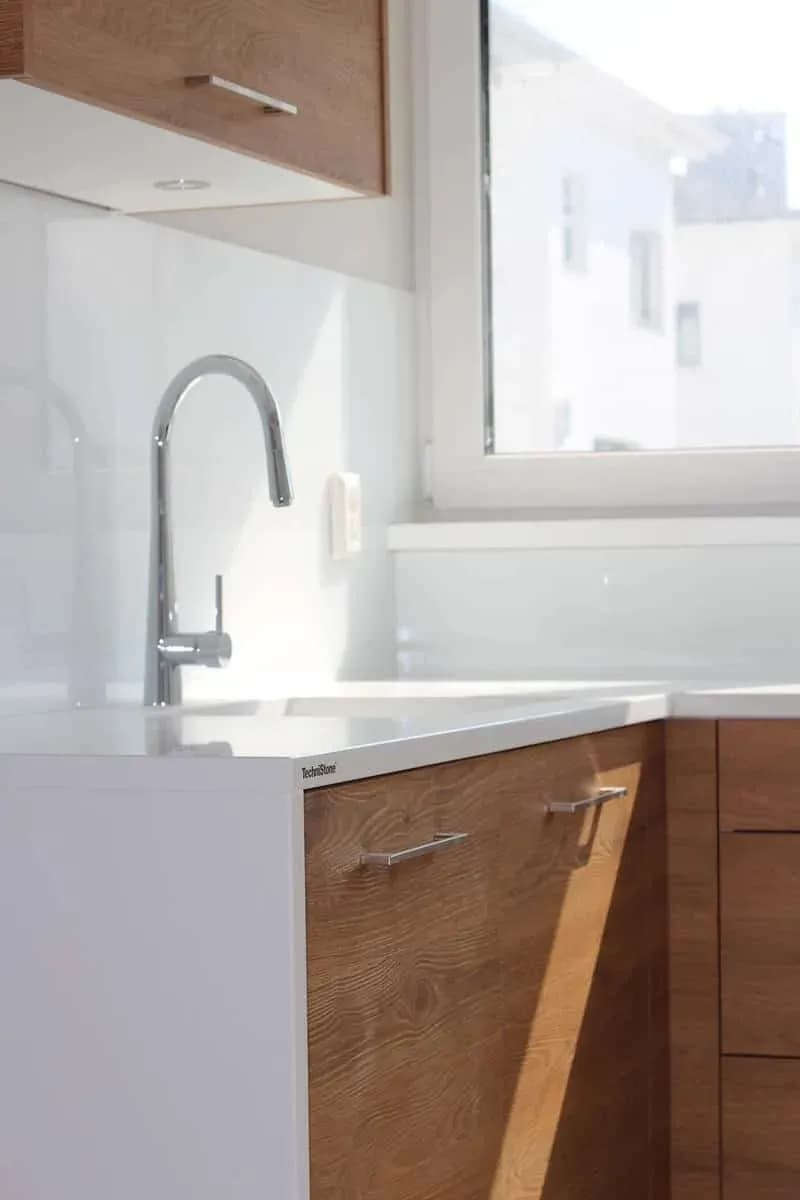 Technistone has a 20 year history of producing highly durable, reliable and exclusive kitchen countertops. Technistone can also be used in bathrooms. The original Italian BretonStone technology was installed and used since 1991 at their manufacturing facility in the Czech Republic. Technistone Quartz is a surface made using the patented BRETON technology, with over 90% crushed quartz, mirrors, glass and granite and the further >10% is a blend of pigments and polymer resins that result in a very practical quartz surface, highly resistant to scratching, staining and heat. The surface is 99.99% non-porous and does not require sealing. Large Jumbo slab sizes available in selected colours Non-porous & easy to maintain Clean with regular detergents No sealing or waxing Heat resistant Scratch resistant